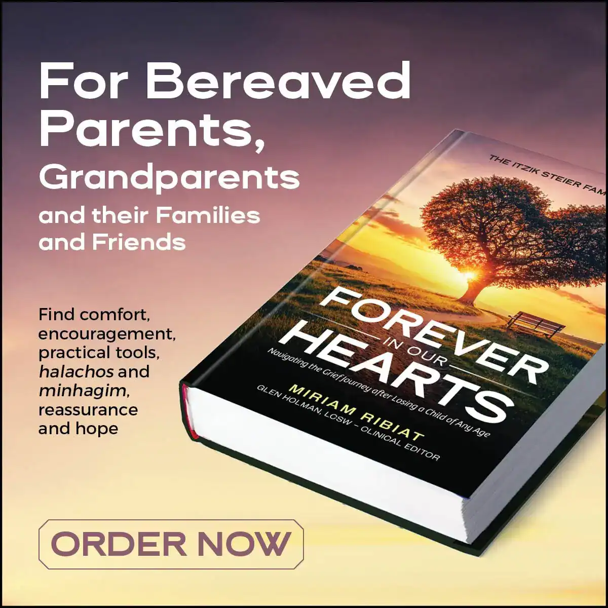 Written by seasoned author Miriam Ribiat, with the editorial input of Tali Arieff, LCSW, RPT, the book guides teens through the grieving process and related emotions; presents real-life scenarios and practical suggestions; elucidates halachos and customs related to aveilus, yahrtzeit, etc.; and empowers readers with aliyas neshamah opportunities.